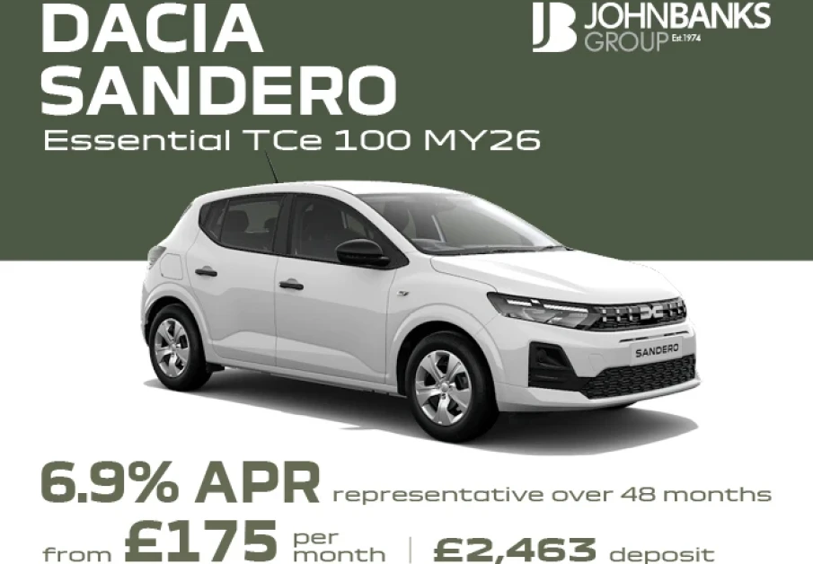 At John Banks Dacia, we make it simple for you to drive away in the Dacia of your choice with finance tailored to suit your budget and lifestyle. On our website, you’ll find a selection of representative finance examples – such as 6.9% APR Representative Dacia Sandero models – but these are just examples. Every customer is different, which is why we can adjust the deposit you wish to put down, the monthly term, and even the specification or upgrade you prefer. Whether you’re considering PCP (Personal Contract Purchase), HP (Hire Purchase) or PCH (Personal Contract Hire), our team can create a personalised finance quote that works for you. We only show a few sample offers online, but the choice really is yours. Contact us today to discuss your requirements and let us help you into your perfect new Dacia.