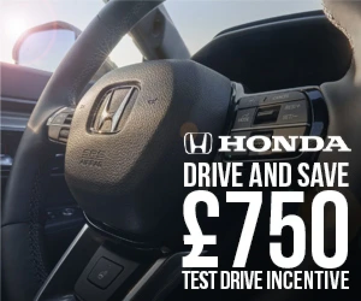 Terms and Conditions New retail CR-V e:PHEV ordered with Honda (UK) and finance approved by Honda Finance Europe from 01 April 2026 to 30 April 2026 and registered by 31 July 2026. Subject to model and colour availability. Terms of this promotion are non-negotiable and are at the promoter’s absolute discretion. This offer may be used in conjunction with selected Honda offers, subject to eligibility. OTR (On the Road) Price may be subject to change due to actual or unexpected changes in tariffs, duties taxes or other costs which may affect importation or other costs of supply. Test Drive: The £750 Test Drive Offer customers receive £750 (including VAT) discount off the On the Road (OTR) price on the purchase of any new Honda model. This offer is available to retail cash and finance customers. Available to UK residents aged 18 or over. The offer is valid on purchases from Honda UK Retailers 01 April 2026 to 30 April 2026 and registered by 31 July 2026. There is no cash or credit alternative, and the terms of this promotion are non-negotiable. This offer may be used in conjunction with selected Honda offers, subject to eligibility. Test drive subject to availability. Full UK driving licence required. Honda Deposit Contribution: £3,000 Honda deposit contribution on all new retail CR-V e:PHEV Plug-in Hybrid purchased through Honda Personal Contract Purchase (PCP) or Honda Hire Purchase (HP). 1.9% APR representative Honda Personal Contract Purchase (PCP): Maximum deposit 35%. At the end of the agreement, there are three options: i) Retain: Pay the optional final payment to own the vehicle, ii) Return: Return the vehicle, or iii) Renew: Part exchange your Honda for a new one. You do not have to pay the Final Payment if you return the vehicle at the end of the agreement and you have paid all other amounts due, the vehicle is in good condition and has been serviced in accordance with the Honda service book and the contracted annual mileage has not been exceeded. Excess mileage charge excludes VAT at current rate. 1.9% APR representative Honda Hire Purchase (HP): At the end of the agreement, once the option to purchase fee [if applicable] has been paid you will own the vehicle outright, you could then choose to part exchange your Honda for a new one. Indemnities may be required in certain circumstances. Finance is only available to UK residents aged 18 or over, subject to status. All figures are correct at the time of publication but may be varied or withdrawn at any time. Honda Motor Europe Limited and Honda Retailers are credit brokers, not lenders. Honda Motor Europe Limited or Honda Retailers are not authorised to provide financial advice or recommendations because they are not independent financial advisors. Honda Finance Europe plc does not make a payment and / or reward to the Honda Retailers or Honda Motor Europe Limited if you enter into a finance agreement with them. Honda Retailers may introduce you to Honda Finance Europe Plc or to other finance providers. Where another finance provider is used, your Honda Retailer is required to inform you of any commission or reward paid to the Honda Retailer. You may request further information about these arrangements from your Honda Retailer. Honda Motor Europe Limited (“HME”) (company number 857969), trading as Honda (UK), a company authorised and regulated by the Financial Conduct Authority for credit broking activities under Financial Services Register No. 996942. Credit is provided by Honda Finance Europe Plc (“HFE”) (company number 3289418), trading as Honda Financial Services, a company authorised and regulated by the Financial Conduct Authority under Financial Services Register no. 312541. Both HME and HFE are registered in England and Wales with their registered offices being located at Cain Road, Bracknell, Berkshire, RG12 1HL.