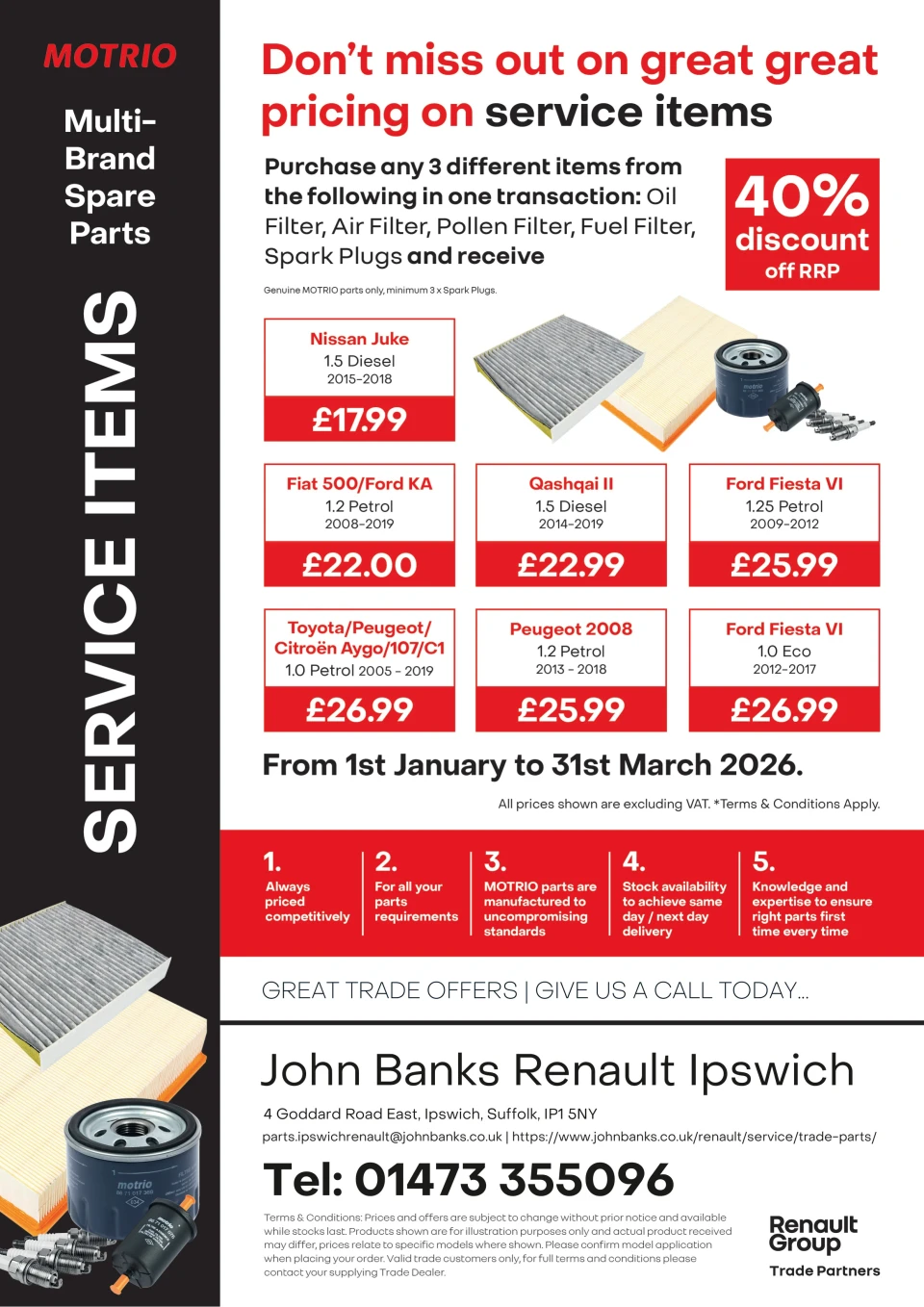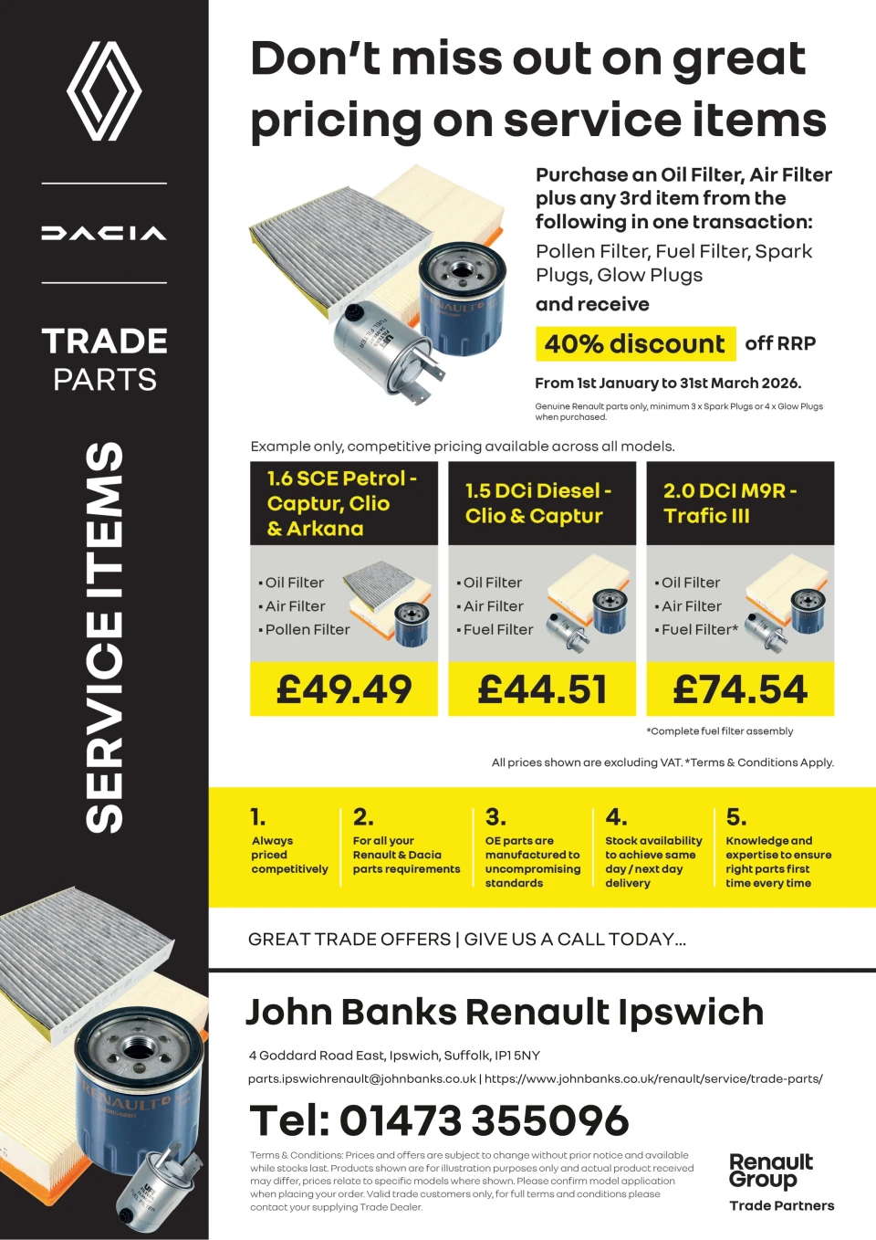 📞 These Trade Parts offers are currently live and applicable to your business, please contact our Parts teams on the parts lines direct to order or email your order requirements